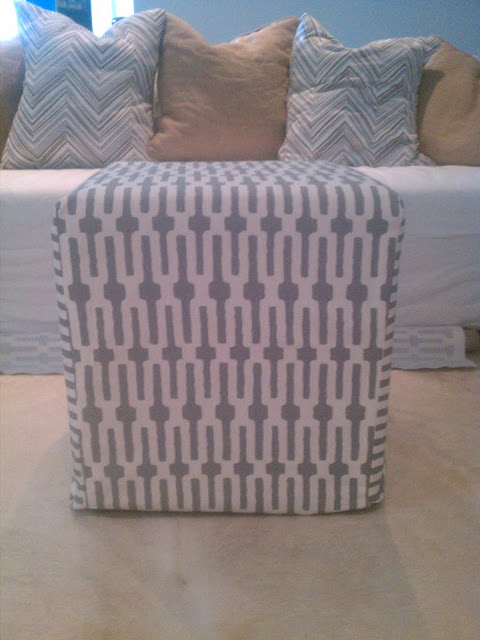 I got a creative bug this weekend and decided to try to cover them. I always thought you couldn't cover leather because it is slippery. Well, I decided an ottoman is an exception to that rule (is it a rule?). I found THE EASIEST guide here. I even surprised myself when they came out so well. I should have done this a long time ago.